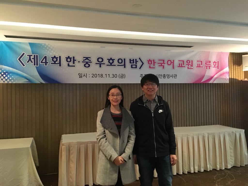 11月30,我院担任二外韩语课程的任课教师张硕、郭玲二位博士应邀参加了在西安召开的韩国语教员国际交流会。