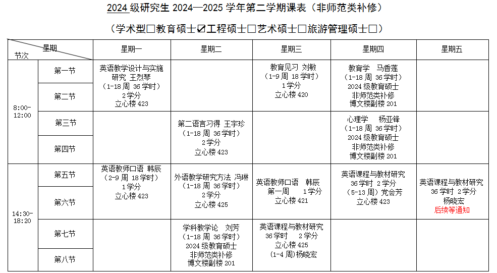 2024级研究生2024—2025学年第二学期课表(教育硕士)