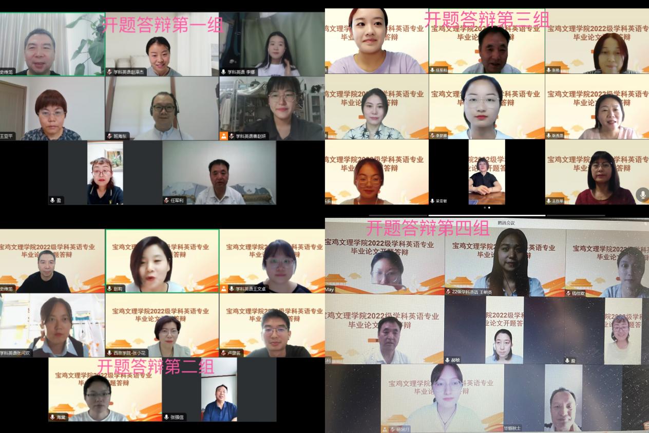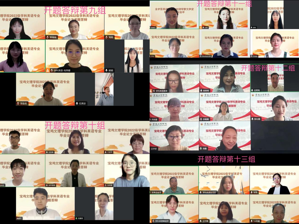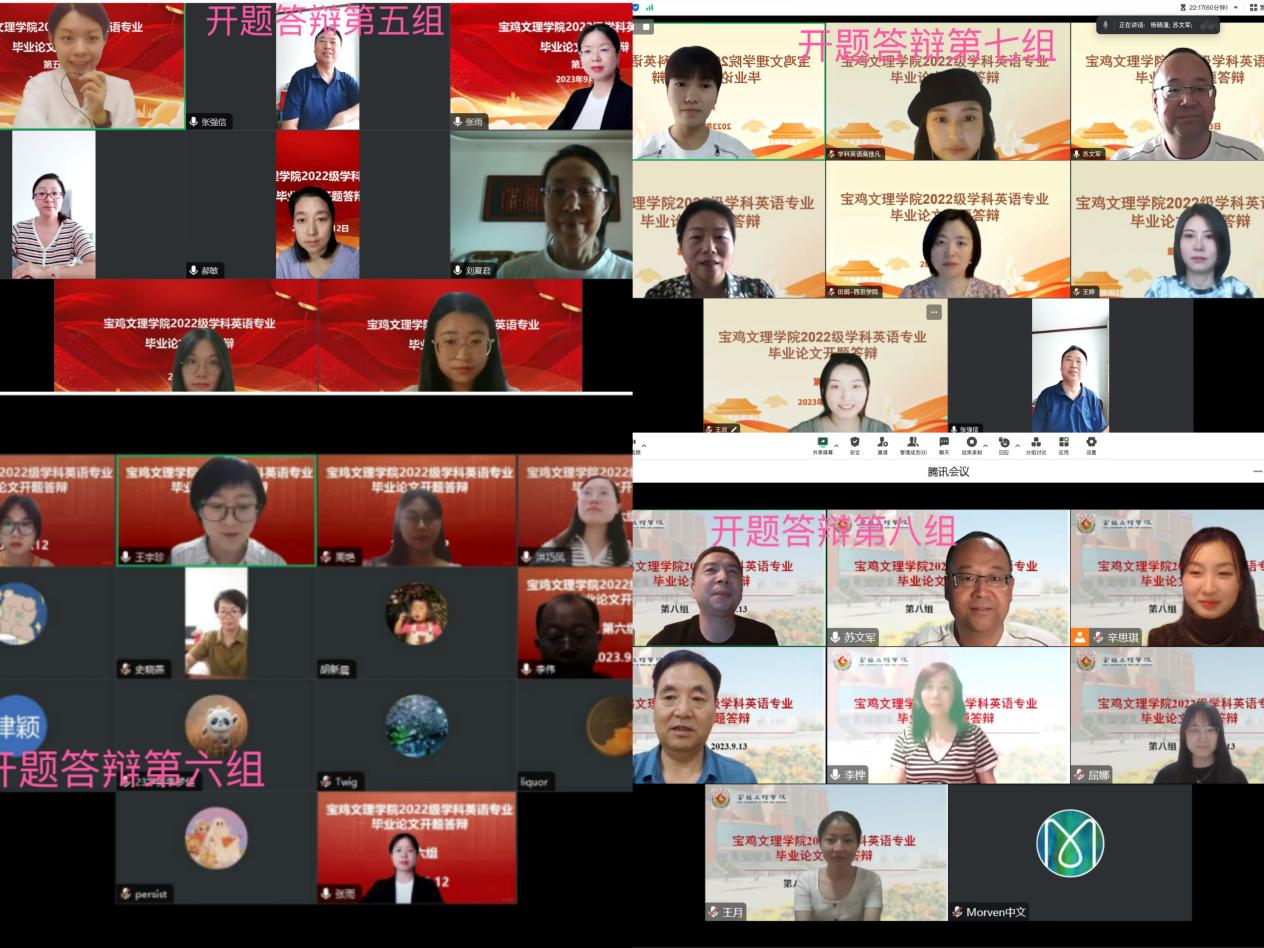 9月11日至9月21日,外国语学院2022级学科教学(英语)专业38名研究生学位论文开题答辩会顺利在线上举行。来自宝鸡文理学院外国语学院、西京学院人文与教育学院、咸阳师范学院外国语学院及宝鸡市英语基础教育领域的36位专家担任评委,2023级部分研究生进行了观摩学习。