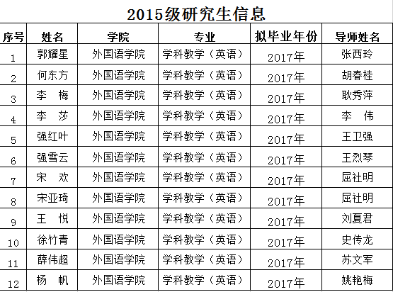 2015级研究生信息