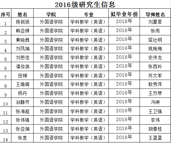 2016级研究生信息