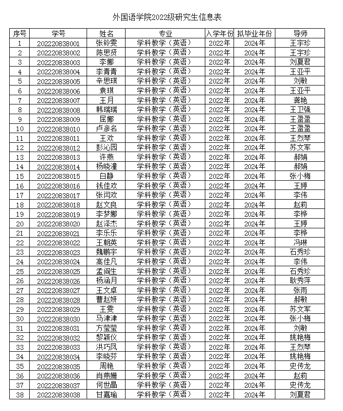 外国语学院2022届毕业研究生信息表