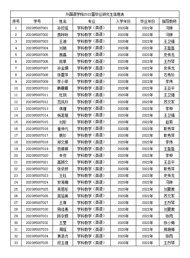 外国语学院2022届毕业研究生信息表