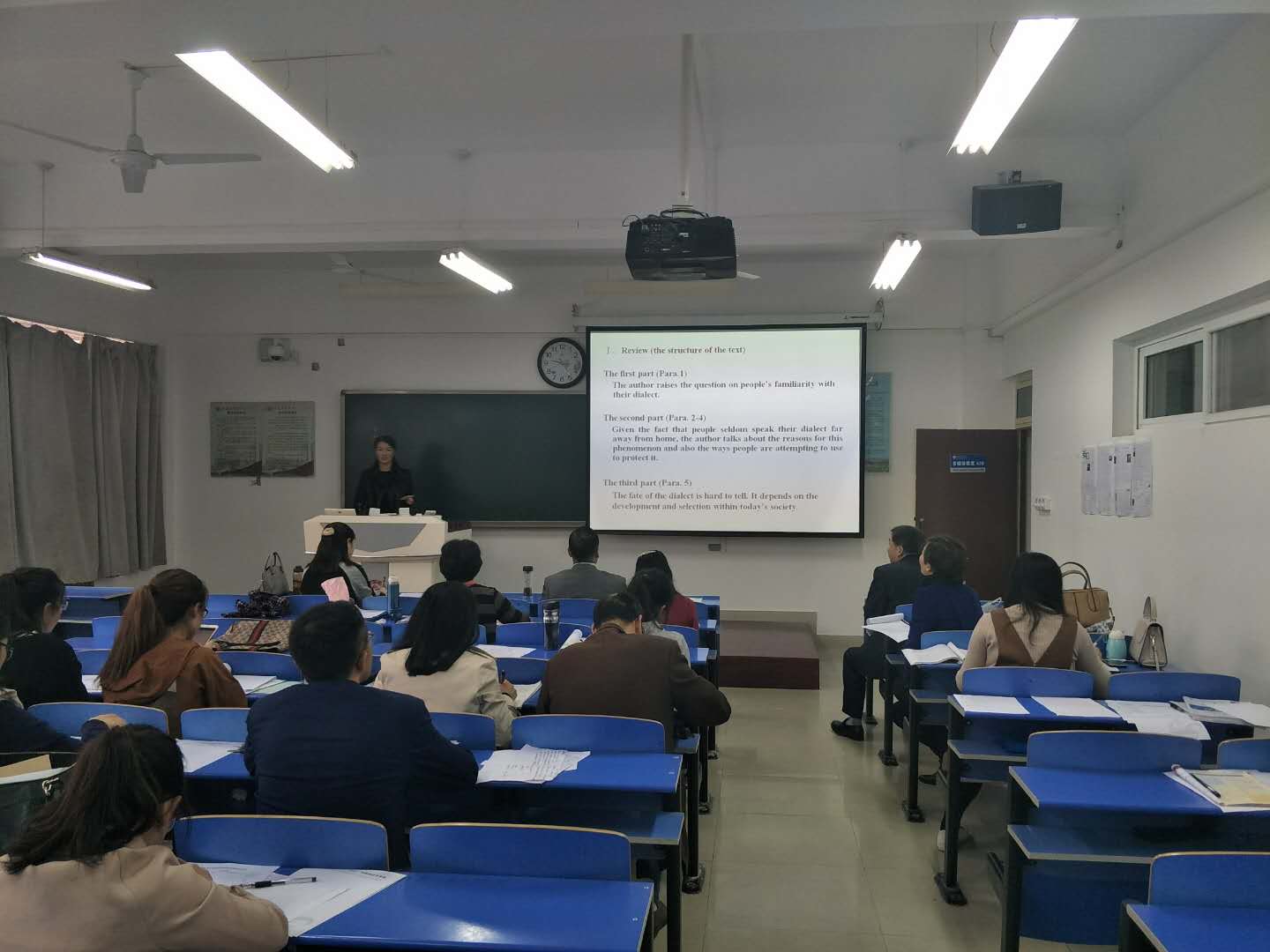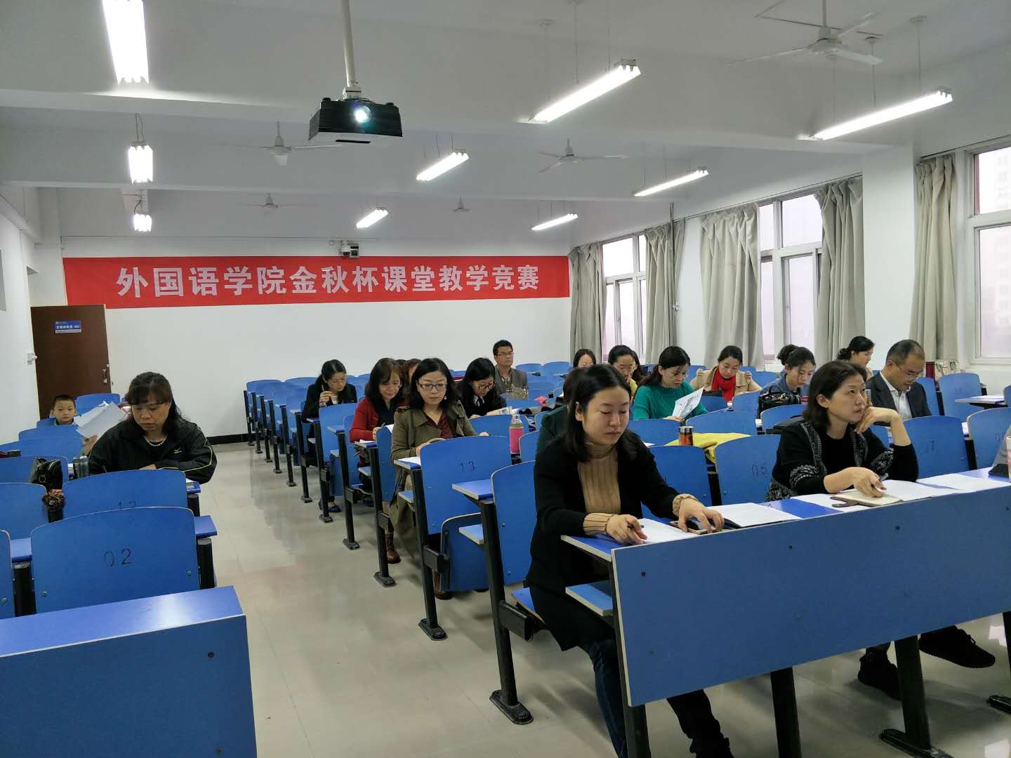 本次比赛中,外国语学院的全体老师都积极参与到了此次的讲课中,这不仅使各位老师加深巩固了自己的专业知识,而且还相互学习了不同的教学手段。见识到了其他教师的教学风采,在互相借鉴学习中提高了自己的教学能力,激励和培养了所有教师的专业魅力。