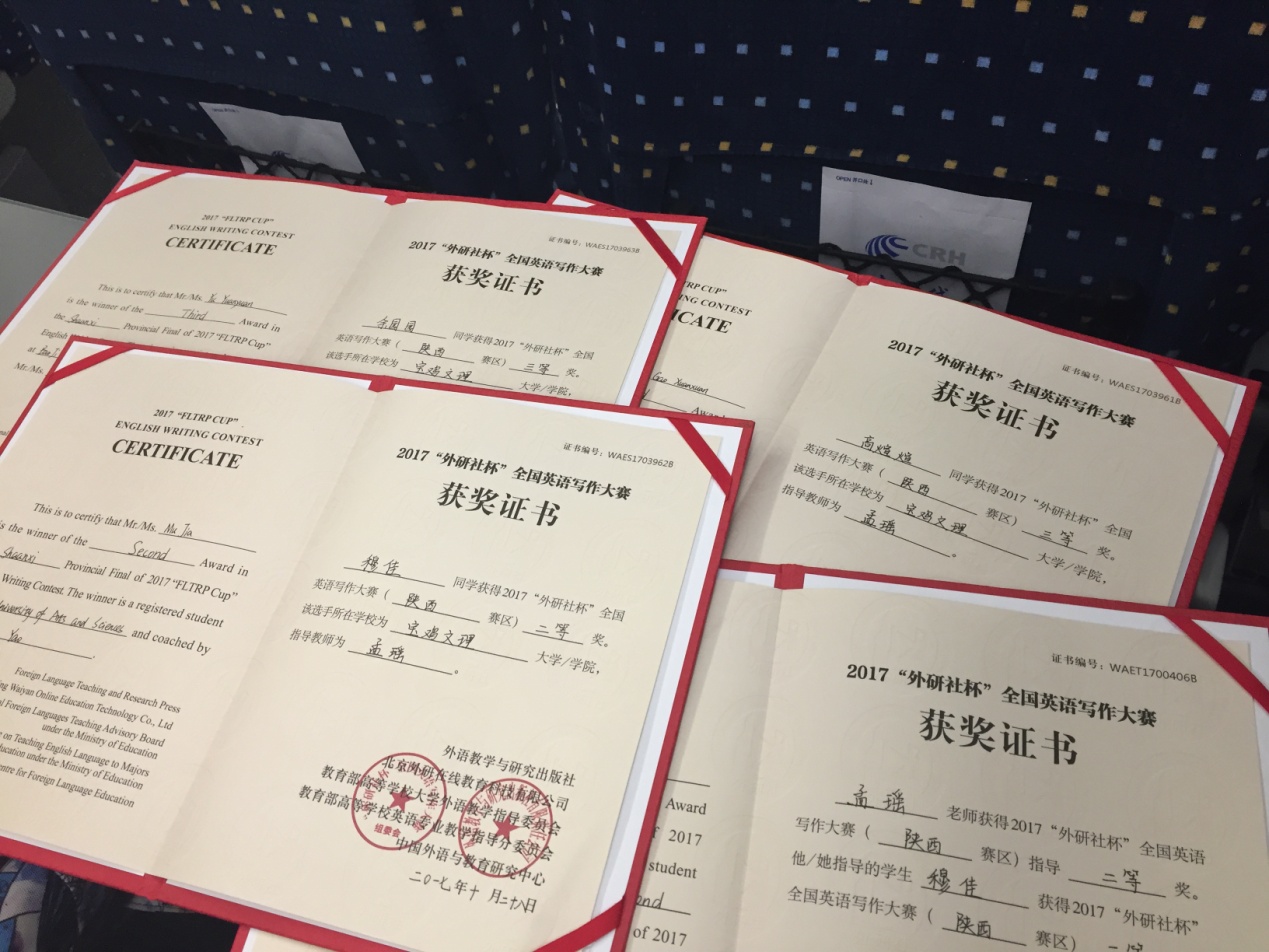 10月28日,由外研社举办的全国大学生英语挑战赛陕西省赛区复赛在西北农林科技大学举行,来自省内42所高校的近300名选手参加了比赛。我校外国语学院共7名学生参加了所有三项赛事。穆佳同学和陈瑞萍同学分获写作、阅读二等奖,高煊煊、郭娇、余园园、张锦江获得三等奖。郭琪和孟瑶获优秀指导教师的称号。外国语学院院长王卫强受邀参担任写作组评委。