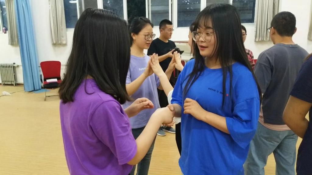 活动中设计了“大风吹”、“滚雪球”、“爱在指间”、“心有千千结”、“我说你画”等七项活动,在一个半小时的活动中所有成员积极投入,放松心情、分享感悟,收获友谊,同学们普遍反映希望以后多组织此类活动。