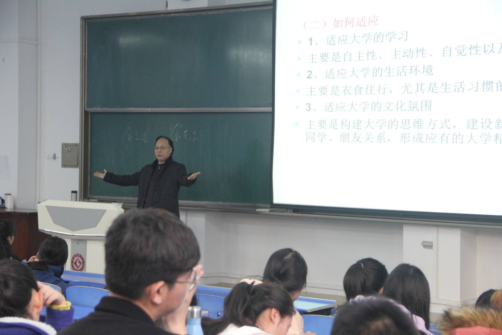 2018年12月5日下午,我院在立心楼408教室组织2018级学生心理健康教育报告会。学校统战部部长,心理学教授彭志启老师应邀做了题为《2018级新生大学生适应性教育》的报告。会议由学院党总支书记孙勇民主持,2018级全体学生参加此次报告会。