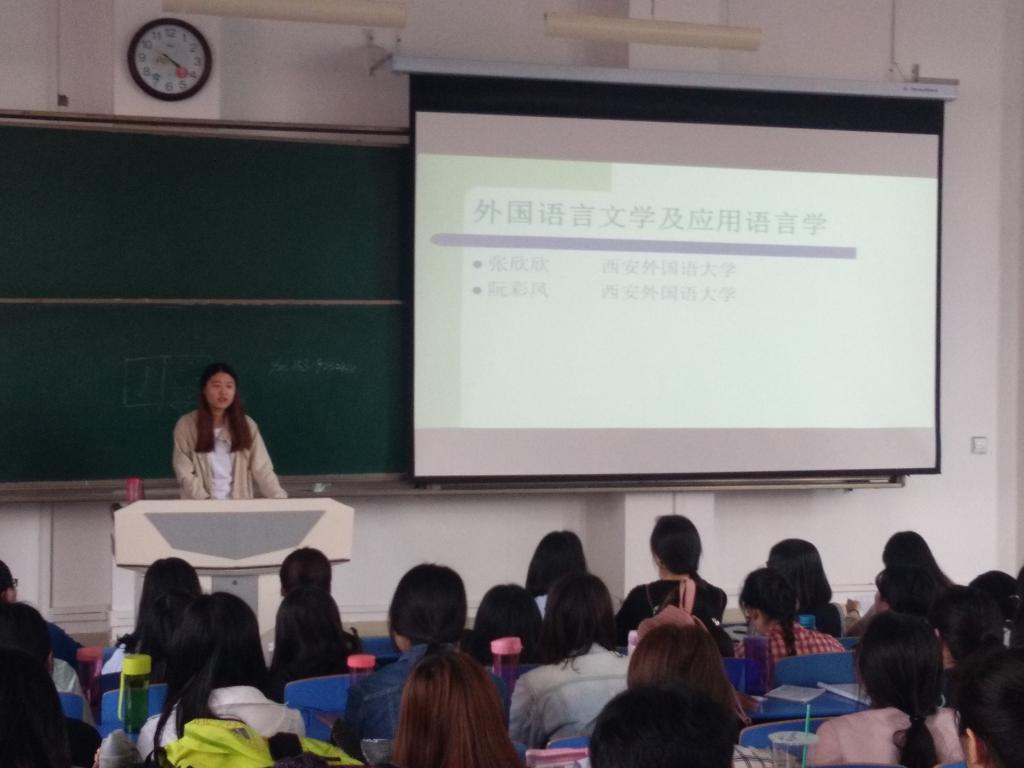 会上,考入西安外国语大学的阮彩凤、王玉、张亮、陈晨、杨敏、张欣欣、考入西北大学的张亮、考入华侨大学的李敏八位同学分别从考研目标的确定、报考院校和专业选择、自信心的树立、专业课及公共课复习计划的制定和执行、备考和复试技巧等方面分享了他们的经验与感悟,同时与学弟学妹们进行了现场沟通交流。