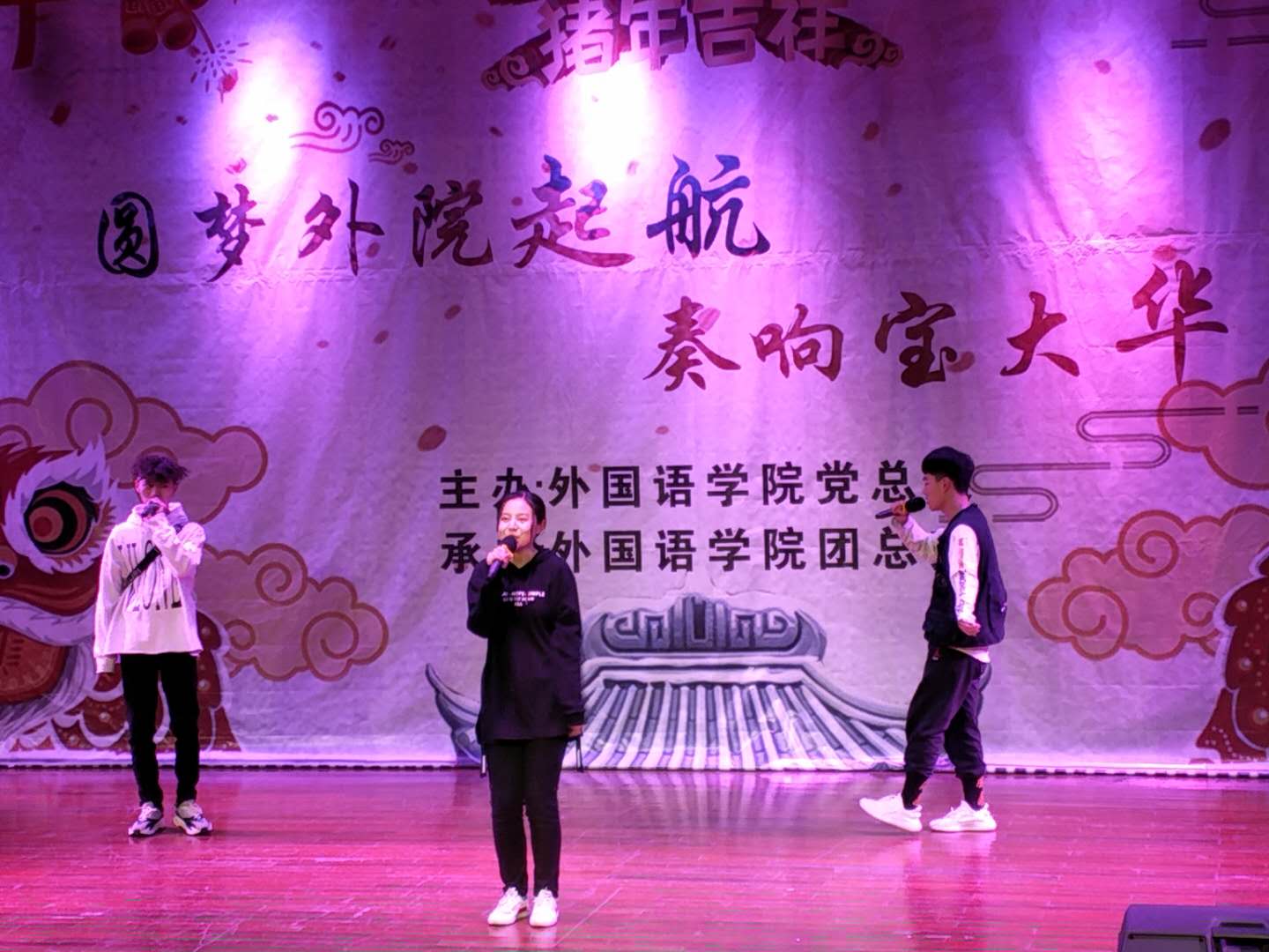为展现当代大学生的精神风貌,丰富同学们的课余文化生活,外国语学院于12月12日晚在新校区音乐厅举办了“圆梦外院起航•奏响宝大华章”2019年迎新晚会。院长王卫强、副院长李伟、学生辅导员、教职工老师及16、17、18级部分学生共380余人观看了此次晚会。