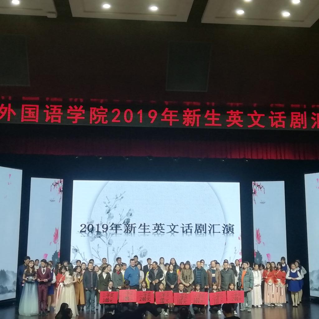 为调动同学们学习英语的积极性,外国语学院于12月3日在高新校区博文楼报告厅举办2019年新生英文话剧汇演。宝鸡文理学院党委副书记栾宏、团委书记党建波、外国语学院党委书记孙勇民、副书记苗亚静、院长王卫强、副院长李伟、全体辅导员和部分教师以及2017–2019级部分学生共650余人观看了本次汇演。