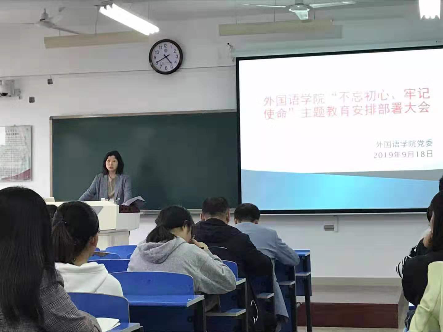 9月18日下午,外国语学院在立心楼426教室召开“不忘初心、牢记使命”主题教育工作部署大会。会议由学院党委书记孙勇民主持,全体党员参加此次会议。