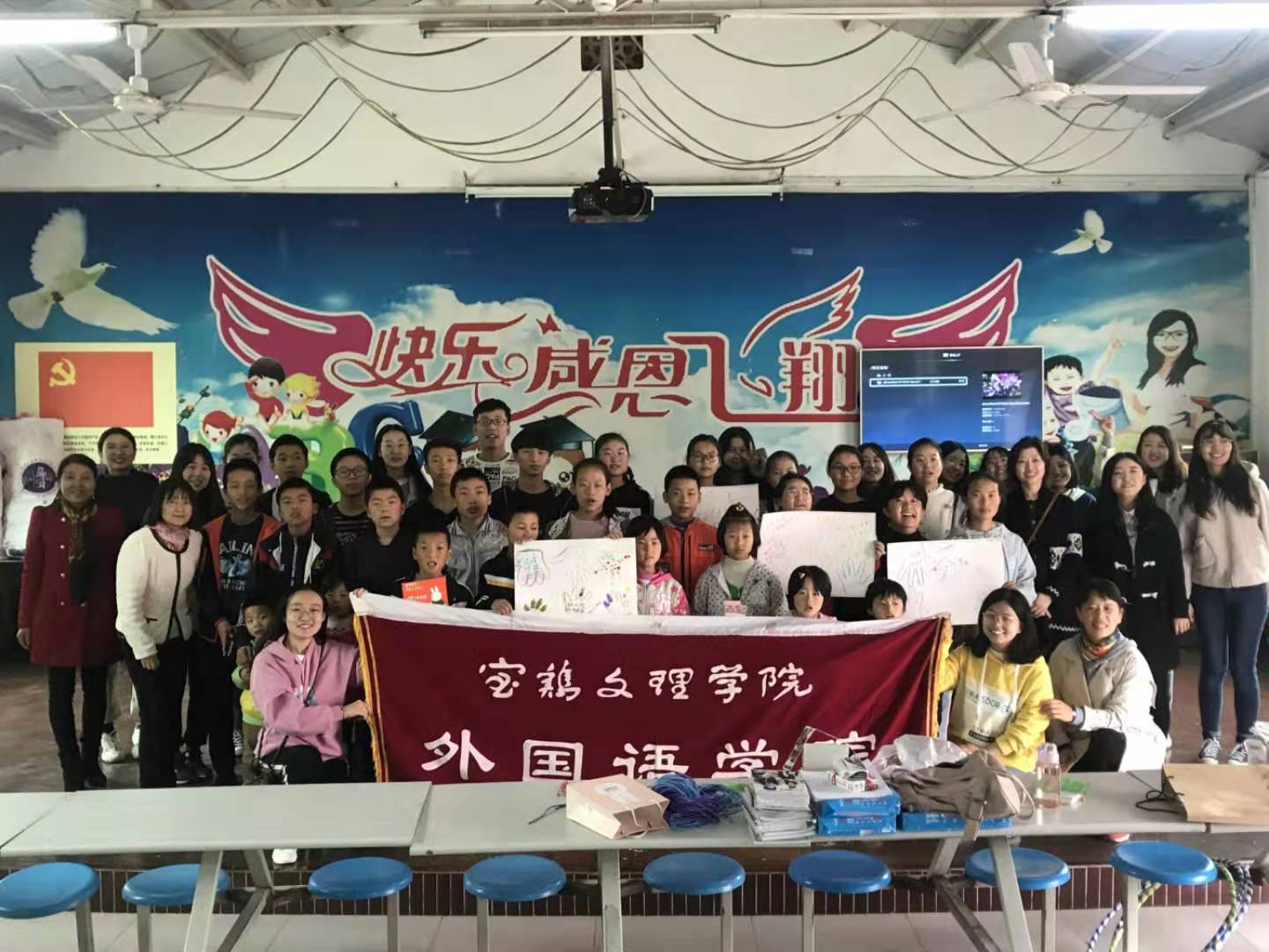 活动中,双方领导分别介绍了本单位基本情况,孙勇民代表外国语学院为福利院的孩子们捐赠了图书等价值600余元学习用品;学生党员通过视频、PPT等形式与孩子们分享了大学生活,孩子们被精彩的大学校园生活吸引;学生党员设计了丰富多彩的团体辅导训练:“筷子传球”、“爱的抱抱”、“呼啦钻圈”、“扯龙尾”等游戏中学生党员和孩子参与其中,笑声不断、高潮迭起;在最后的“彩绘未来”环节,孩子们用彩笔拓出自己的手印并写下了他们的理想和愿望。