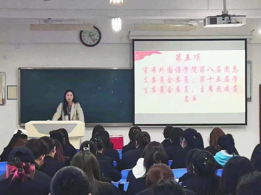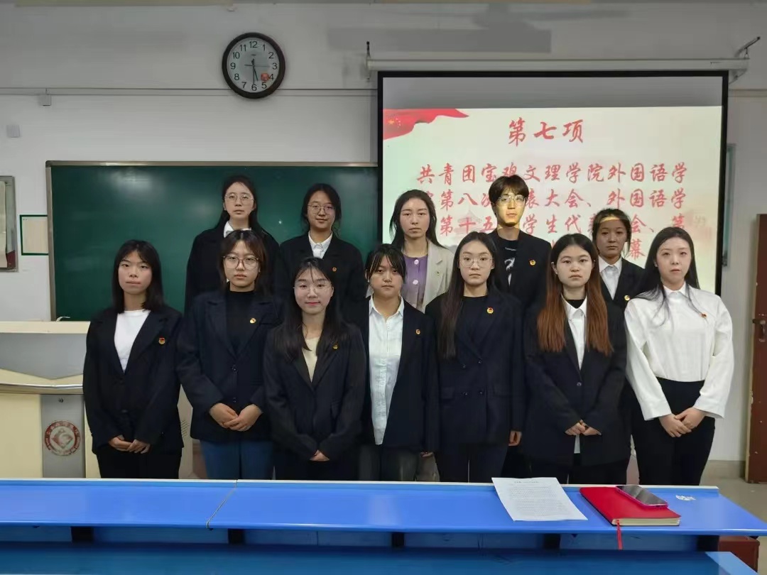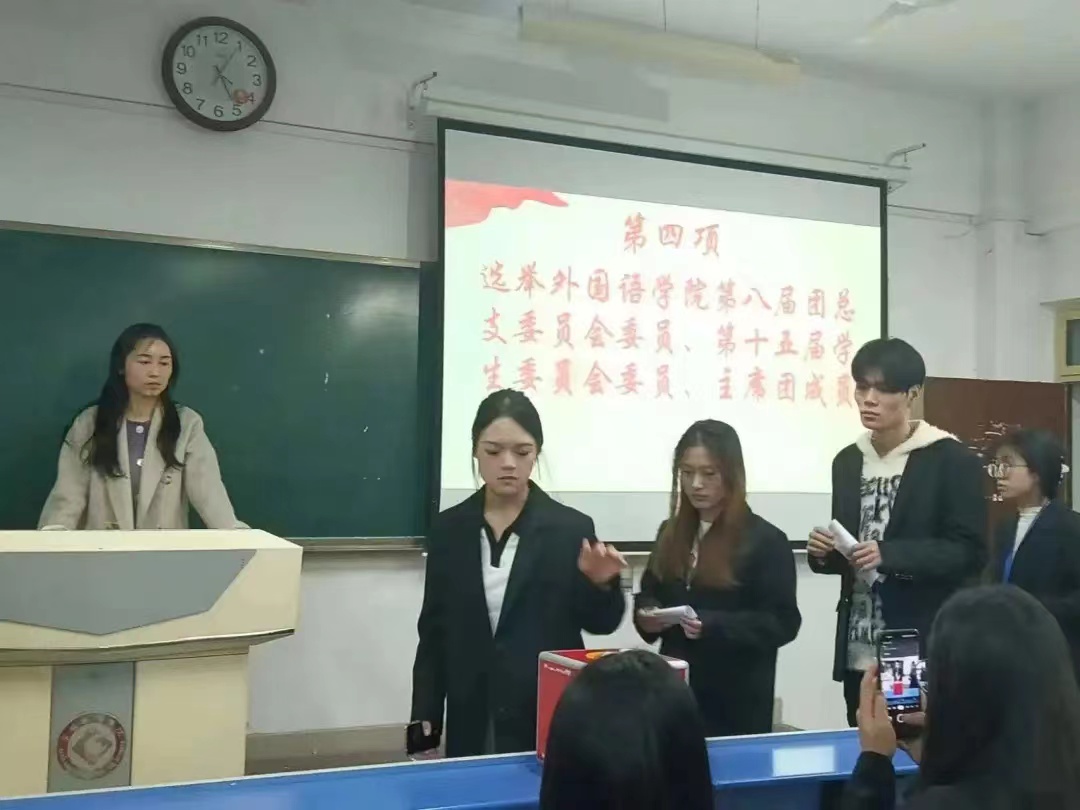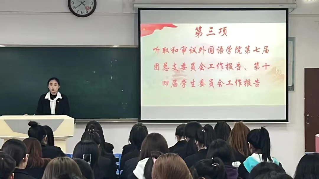 2023年11月17日下午,共青团宝鸡文理学院外国语学院第八次代表大会、外国语学院第十五次学生代表大会暨第三次研究生大会在高新校区立心楼426教室顺利召开。学院副书记杨子祁、团总支书记樊俊青,团总支、学生会学生干部代表、各团支部团员代表共80余人参加了大会。