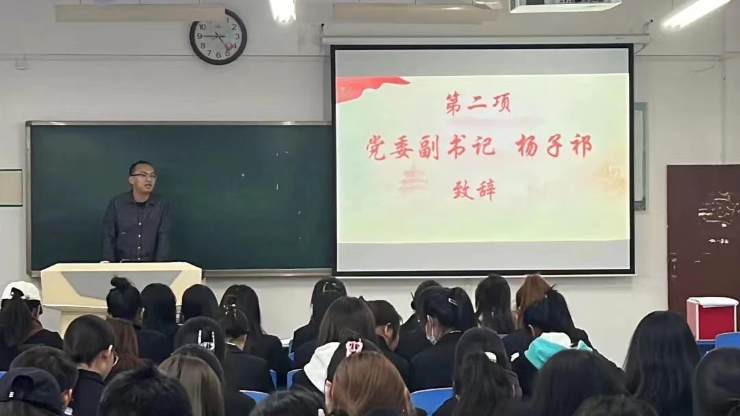 大会在庄严的国歌声中拉开序幕。杨子祁代表学院党委对大会致辞。学院党委对本次大会的召开表示热烈祝贺,对过去一年辛勤付出、努力奋斗的团总支、学生会全体成员表示衷心感谢。希望广大团学干部提高政治能力,自觉用习近平新时代中国特色社会主义思想武装头脑、指导实践、推动工作;同时强化责任担当,努力增强服务能力和本领,践行初心使命,带领全院青年勇做走在时代前列的奋进者、开拓者和奉献者。