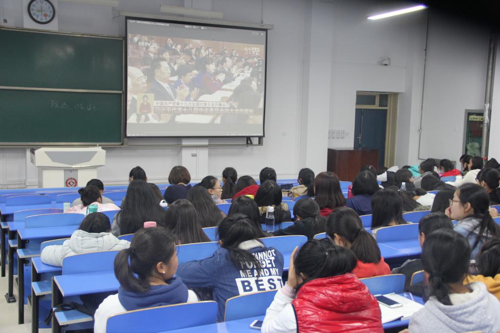 开幕式中习近平总书记提出了此次大会的主题并代表十八届中央委员会向大会作了报告。习近平总书记汇总了过去五年的工作和历史性变革,从新时代中国共产党的历史使命、全面建设社会主义现代化国家新征程、建设现代化经济体系、坚定文化自信、提高和改善民生水平、加快生态文明体制改革、全面推进国防和军队现代化、坚持和平发展道路等方面对未来我国发展提出一系列“前所未闻”的新思想、新论断、新提法、新举措。老师、同学们认真观看并学习了习近平总书记的重要讲话。2015级学生王雪说,学习党的创新精神并将其融入到平时的学习生活中,是身为学生干部必须要做的事情,我们应该以自己的实际行动践行社会主义核心价值观,发挥好学生干部应有的先锋模范作用。我院党总支书记孙勇民指出,总书记的讲话展望了未来,以非常深沉的历史使命感,聚焦于党的远大理想和崇高追求,“不忘初心,继续前进”是此次讲话的主题,也是贯穿于讲话的红线,体现了我们党一心为民,一切为民族奉献的精神。
